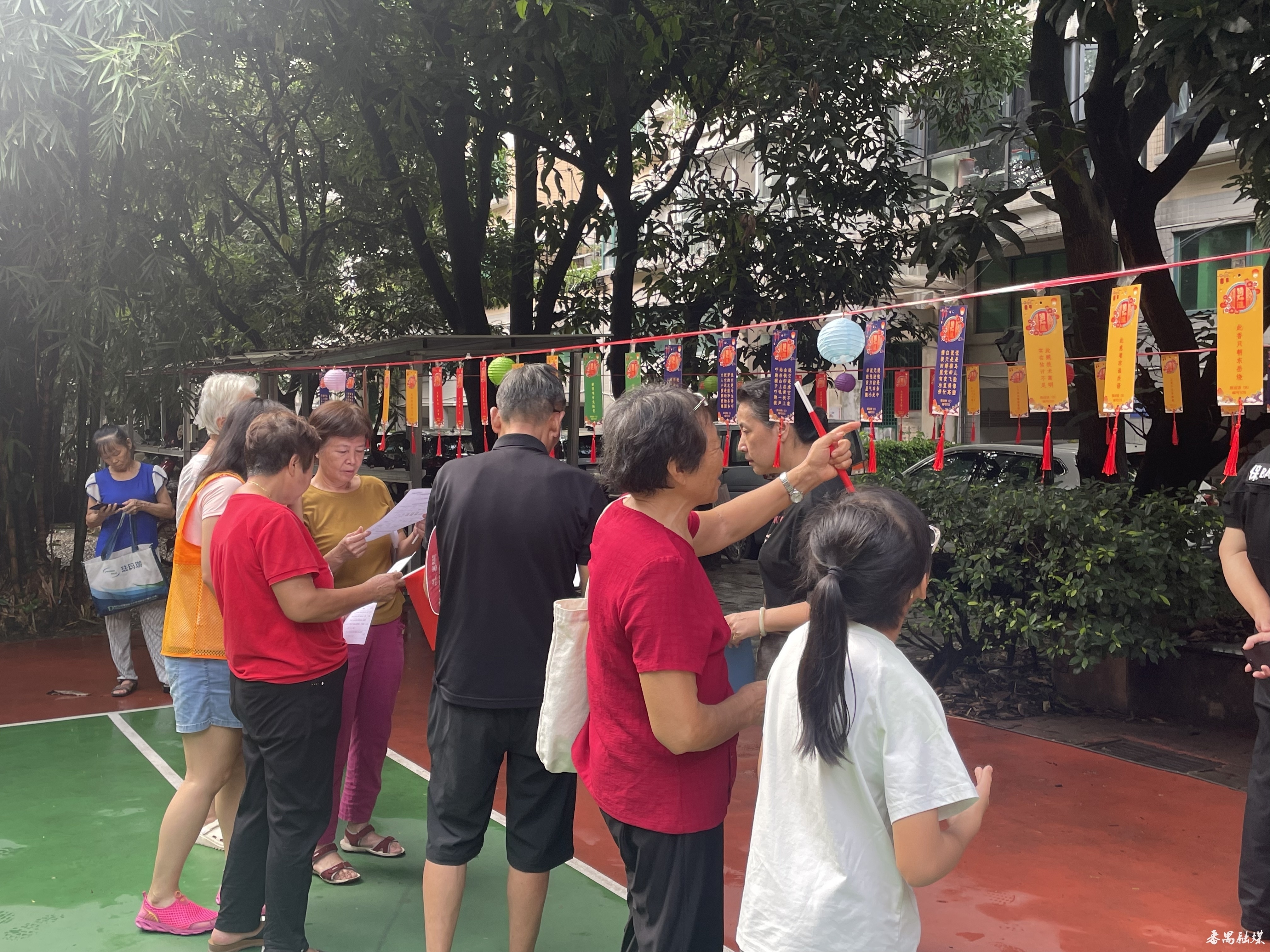 中秋假期,各社区举办的灯谜竞猜、文艺演出、游园活动等,让人们在感受传统文化魅力的同时,也增添了许多欢乐。只见五彩斑斓的小串旗和大红灯笼高高挂起,营造了喜庆祥和的浓浓节日氛围,大人小孩齐上阵,笑声、喝彩声此起彼伏,每个人都沉浸在游戏的欢乐之中。