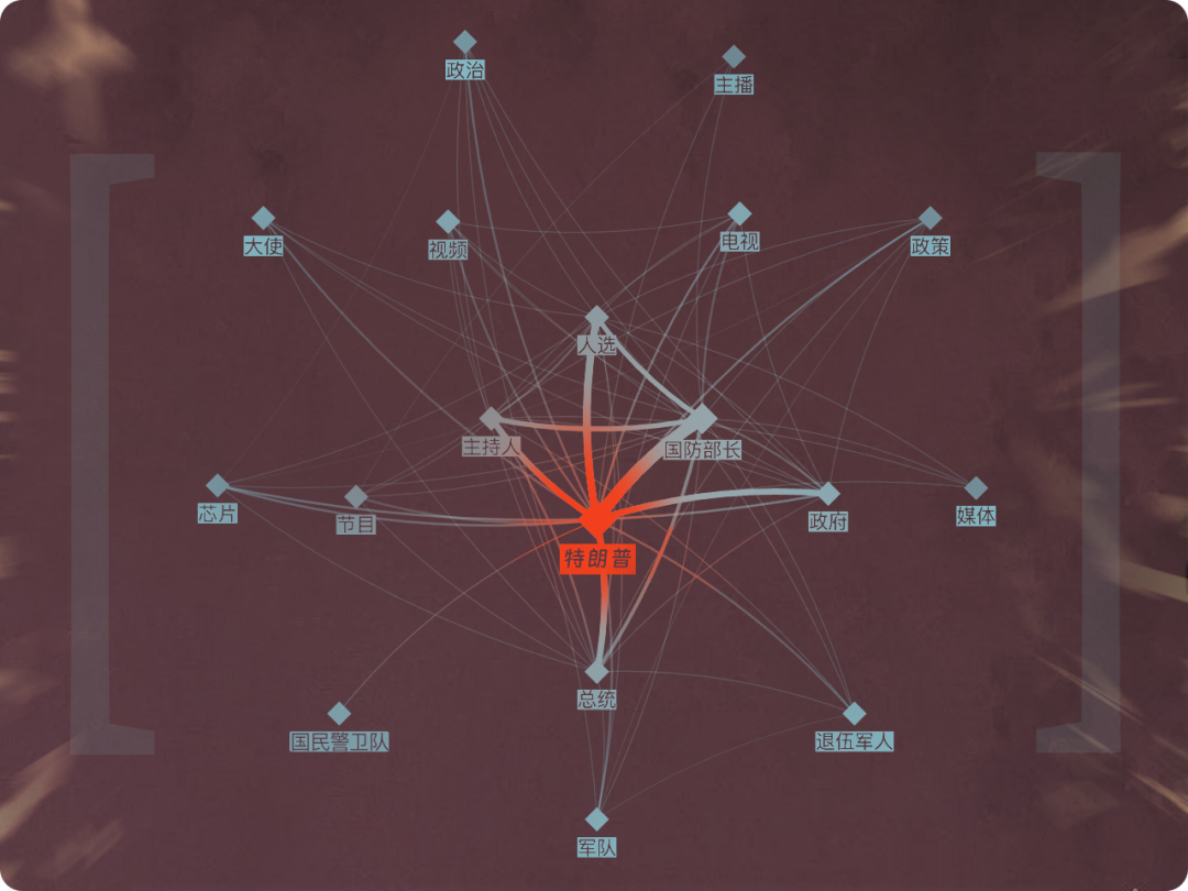 与海格塞斯相关的报道中,出现频次最高的词,是“特朗普”。